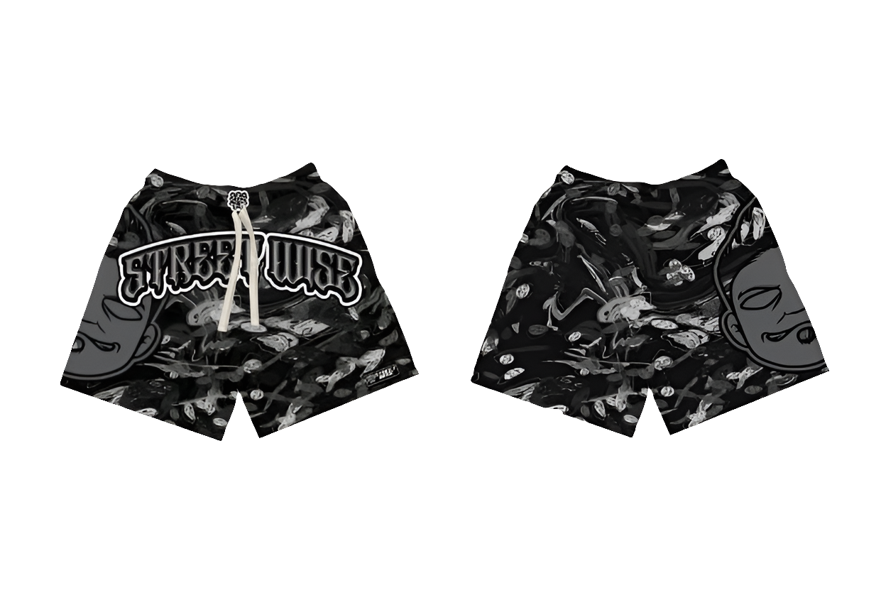The streetwise meshortv1 features our version 1 meshshort design with a liquid camou logo pattern. Enjoy comfort and style in these breathable shorts, perfect for any outdoor or athletic activity.